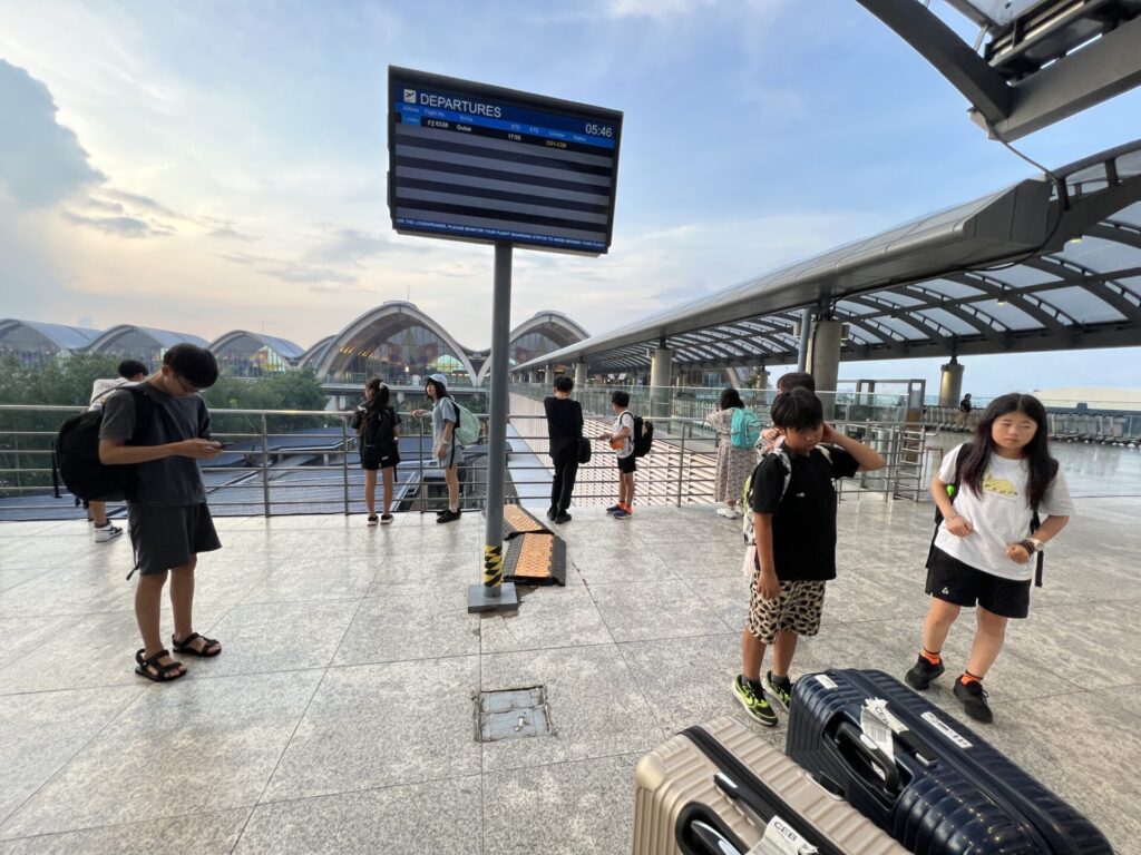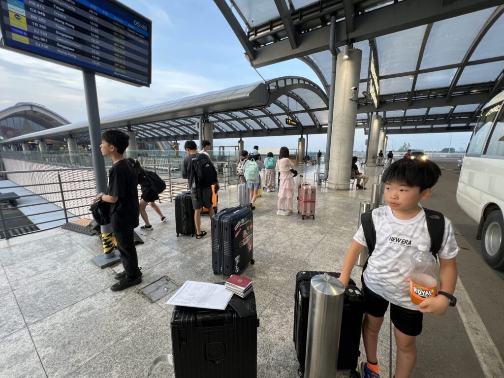 When we arrived at the airport, the beautiful sunrise seemed to gently send the children off 🌅.