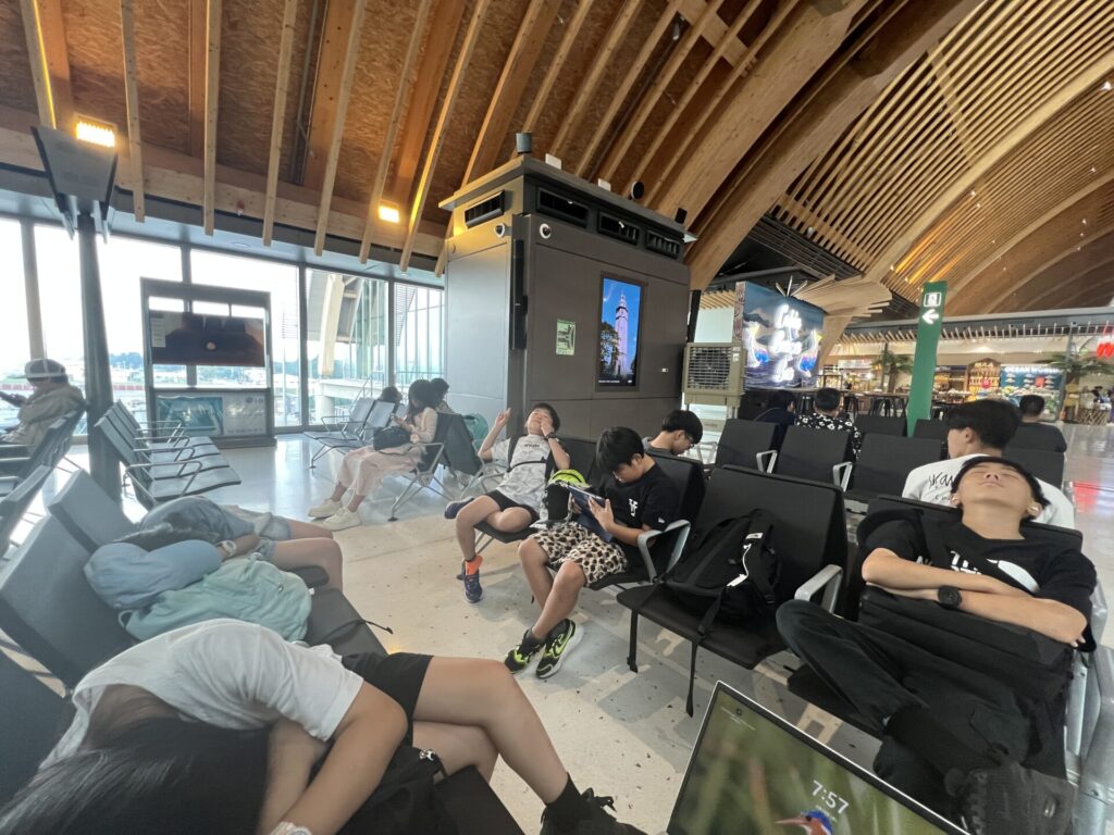 In front of the boarding gate, they seemed relieved and slipped back into “deep-sleep mode” 😴.