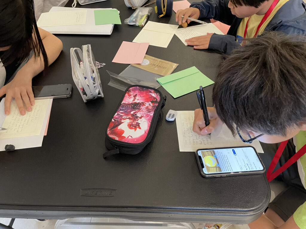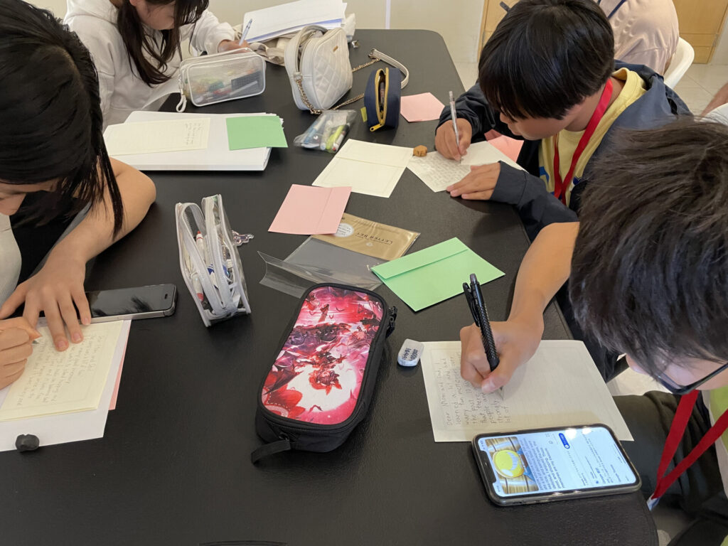 Después de las clases, llegó la hora de escribir cartas para sus padres.