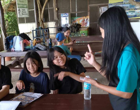 Por exemplo, imaginamos situações do dia a dia em que o inglês é realmente utilizado. Junto com o professor, os alunos visitam pontos turísticos, shoppings, restaurantes e cafés em Cebu, aprendendo na prática como fazer reservas, pedir comida ou lidar com diferentes situações em inglês.