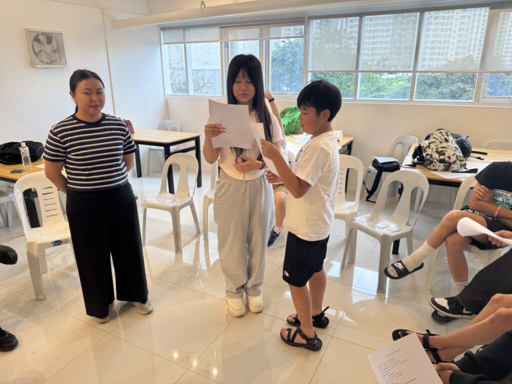 Pela manhã, as crianças se desafiaram a fazer suas apresentações em inglês.