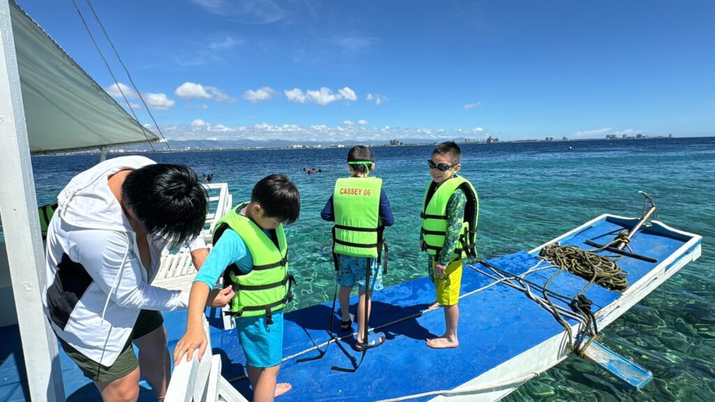 Eles vão curtir atividades marítimas com snorkeling em Hilutungan🤿 e um delicioso BBQ na ilha de Hilutungan🍖!
