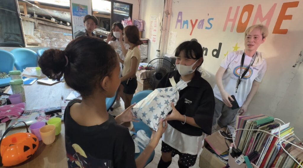 No final, tiramos uma foto em grupo com a “pose do Anyas”📸✌️ e entregamos os presentes que trouxemos do Japão🎁 As crianças locais ficaram muito felizes🌈
