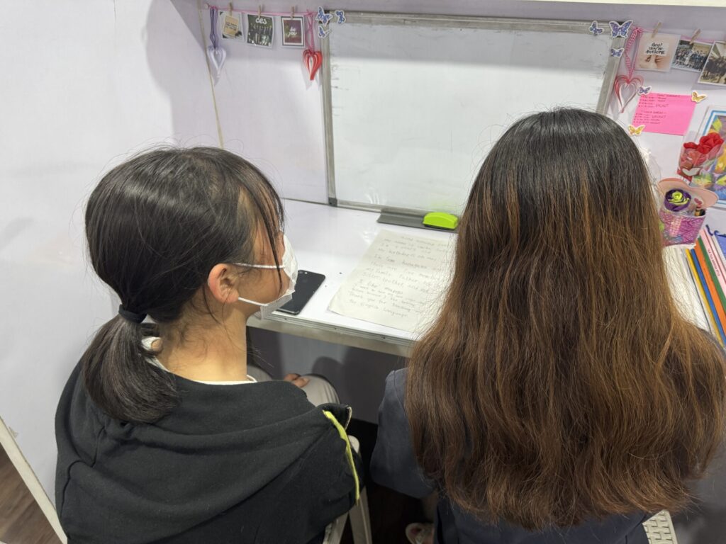 Já falta apenas 1 dia para a cerimônia de formatura🙄💦 Na aula de hoje, os professores filipinos revisaram os discursos que as crianças prepararam e deram orientações após ouvi-los praticar✨