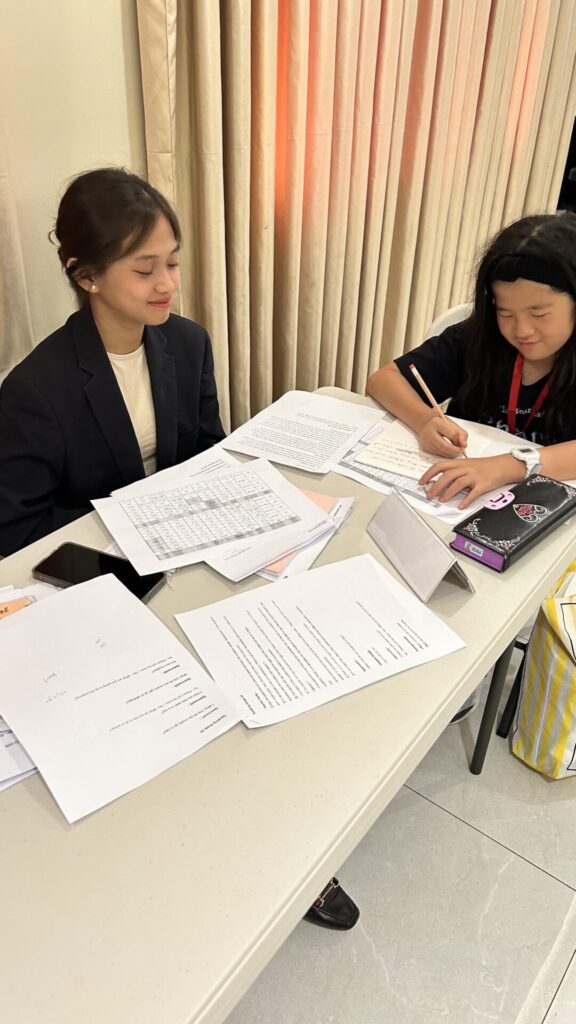 ทุกคนตั้งใจเรียนเพื่อเป้าหมายการสอบผ่านและพัฒนาทักษะการสนทนาภาษาอังกฤษขั้นพื้นฐาน