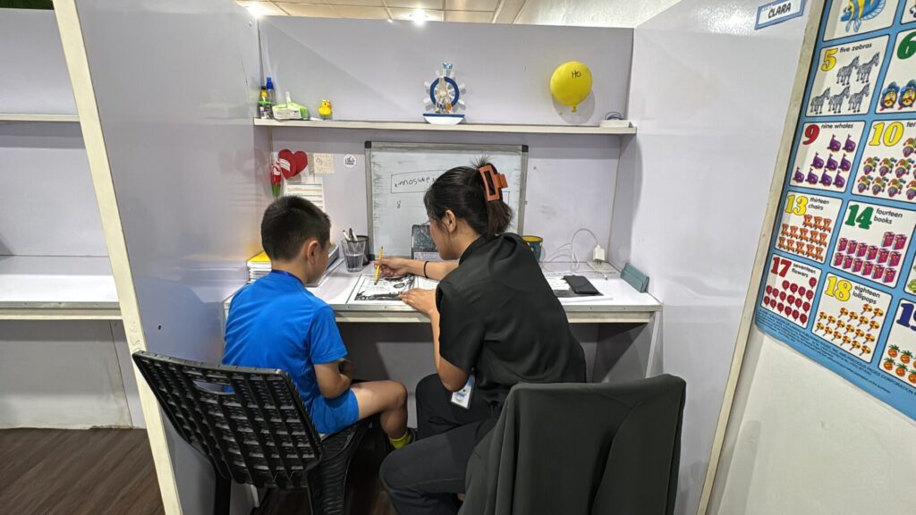 ส่วนในคลาสตัวต่อตัว เด็ก ๆ แม้จะตื่นเต้น แต่ก็พยายามเลียนเสียงคุณครูและมีสมาธิกับบทเรียนมาก ๆ!