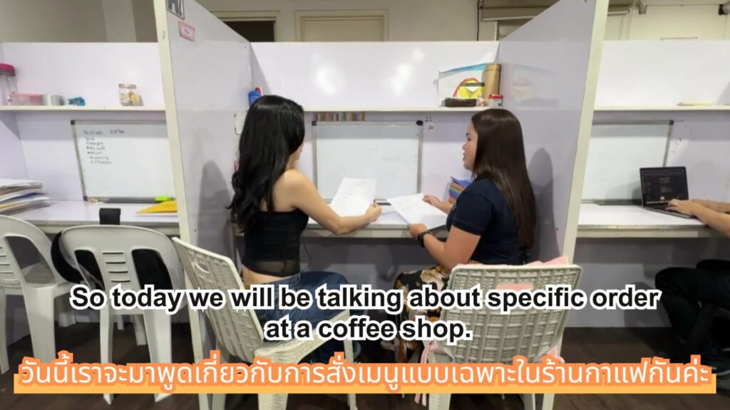 ในชั้นเรียน นักเรียนได้เรียนรู้ประโยคและวิธีการสั่งเครื่องดื่มในคาเฟ่เป็นภาษาอังกฤษ!