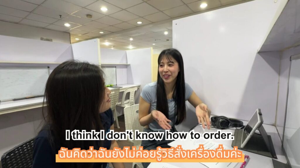 “ตอนสั่งจริง ๆ แล้วตื่นเต้นมาก เลยลืมประโยคที่ซ้อมไว้ในห้องเรียนไปนิดหน่อย…”