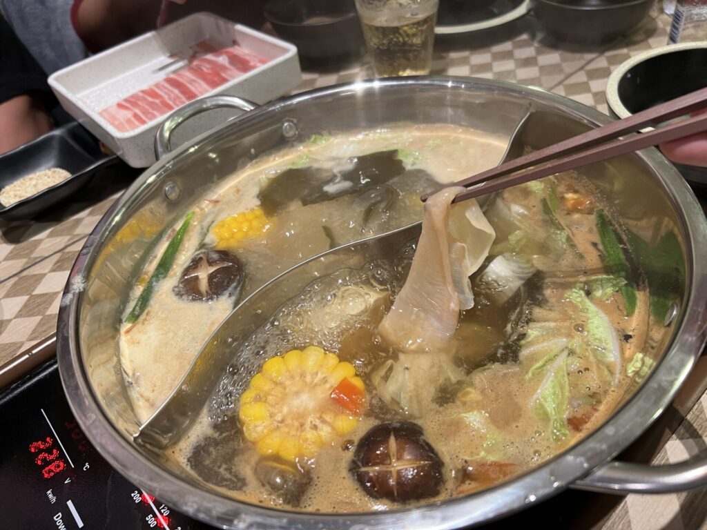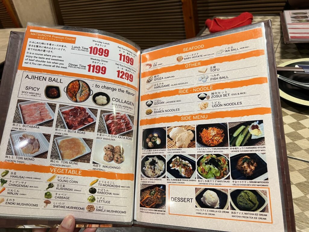 豬肉與雞肉的涮涮鍋午餐吃到飽為899披索(約2,386日圓),平日晚餐為999披索(約2,652日圓)。