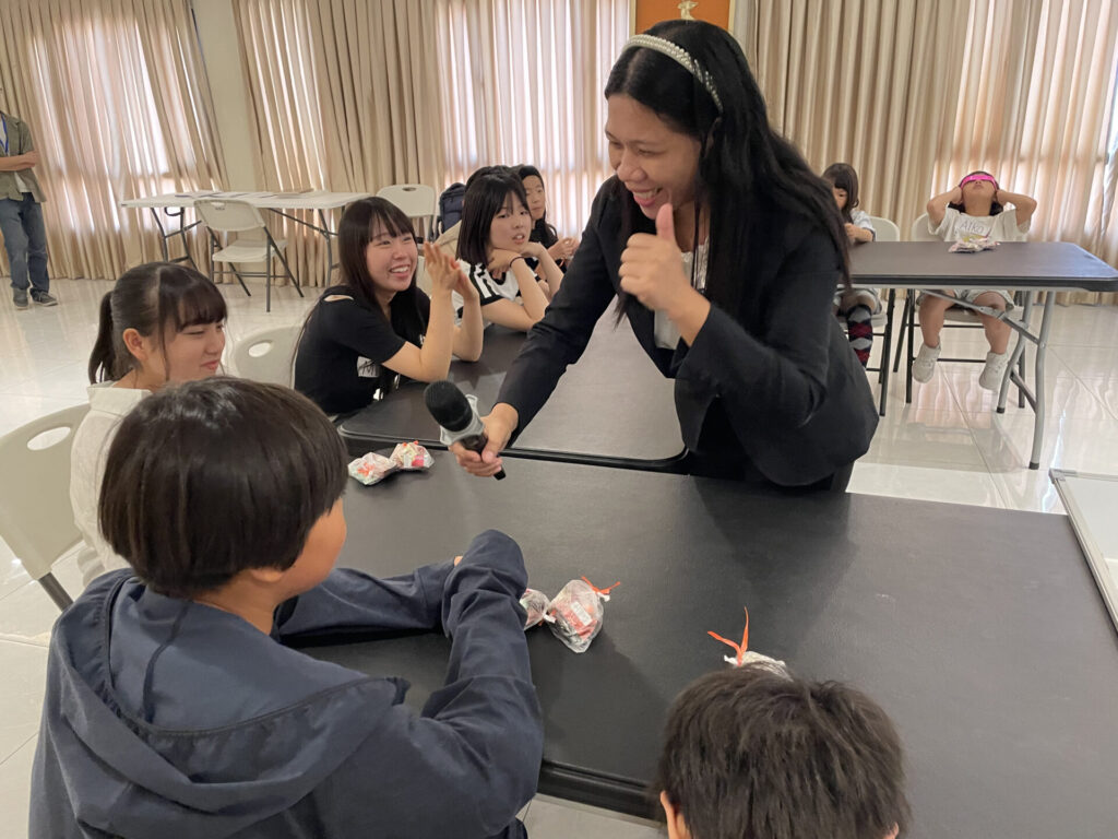 最初はオリエンテーションを受けて、その後講師たちとウェルカムパーティ。パーティでは子供達に英語を使ってコミュニケーションする楽しさを感じてもらうため、色々なゲームをしたり、歌を歌ったりしました。