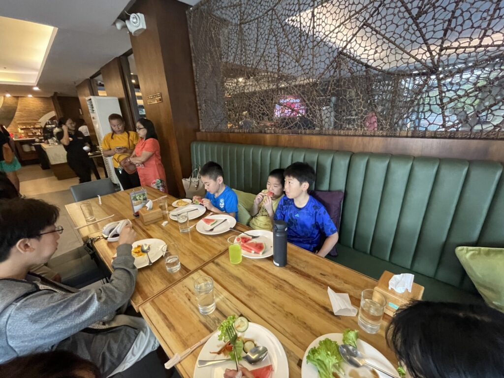Trước tiên, các em dùng bữa sáng buffet tại khách sạn Castle Peak!
